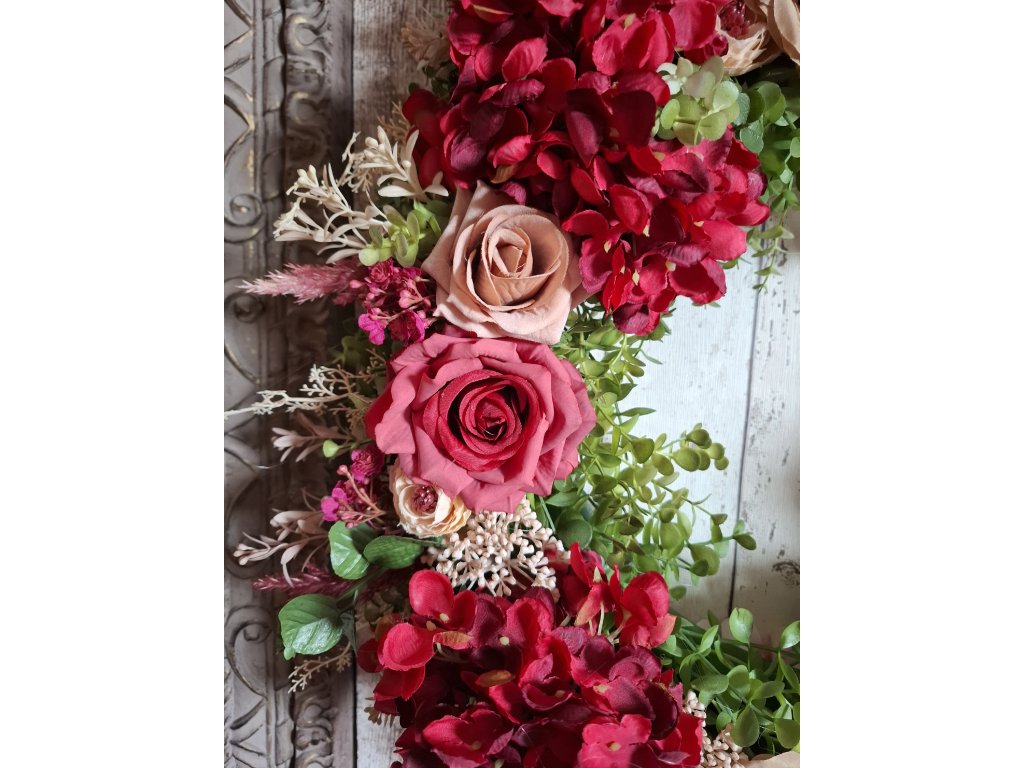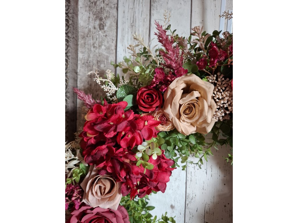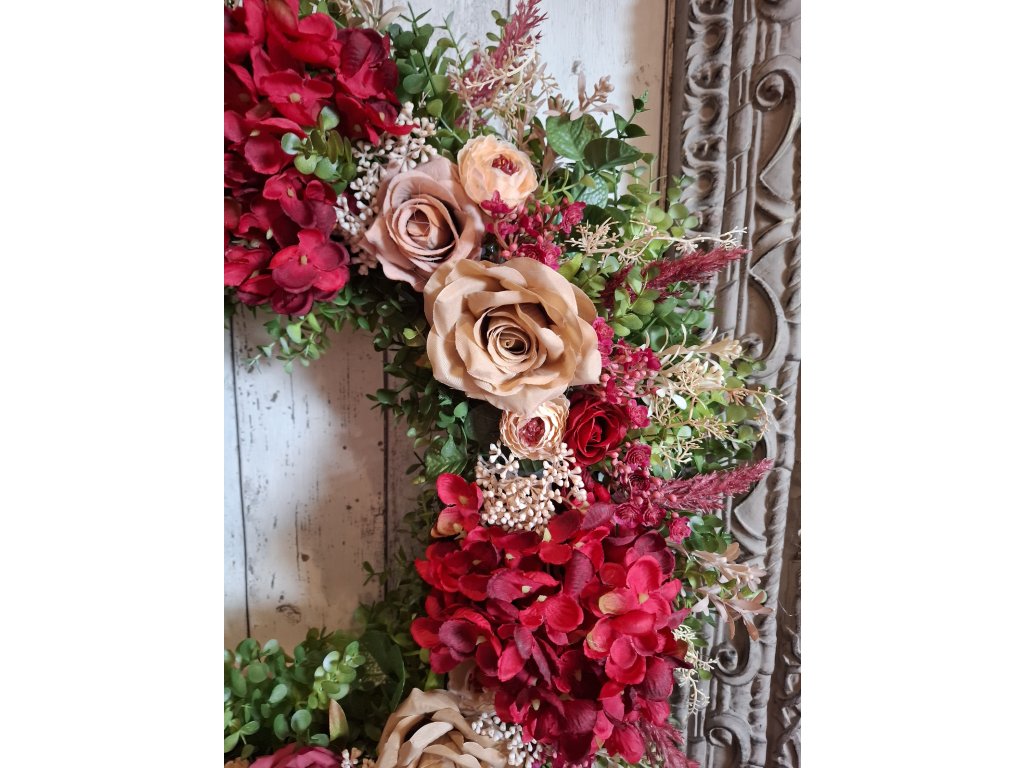 celoroční věnec z umělých květin, průměr cca 58-60cm
