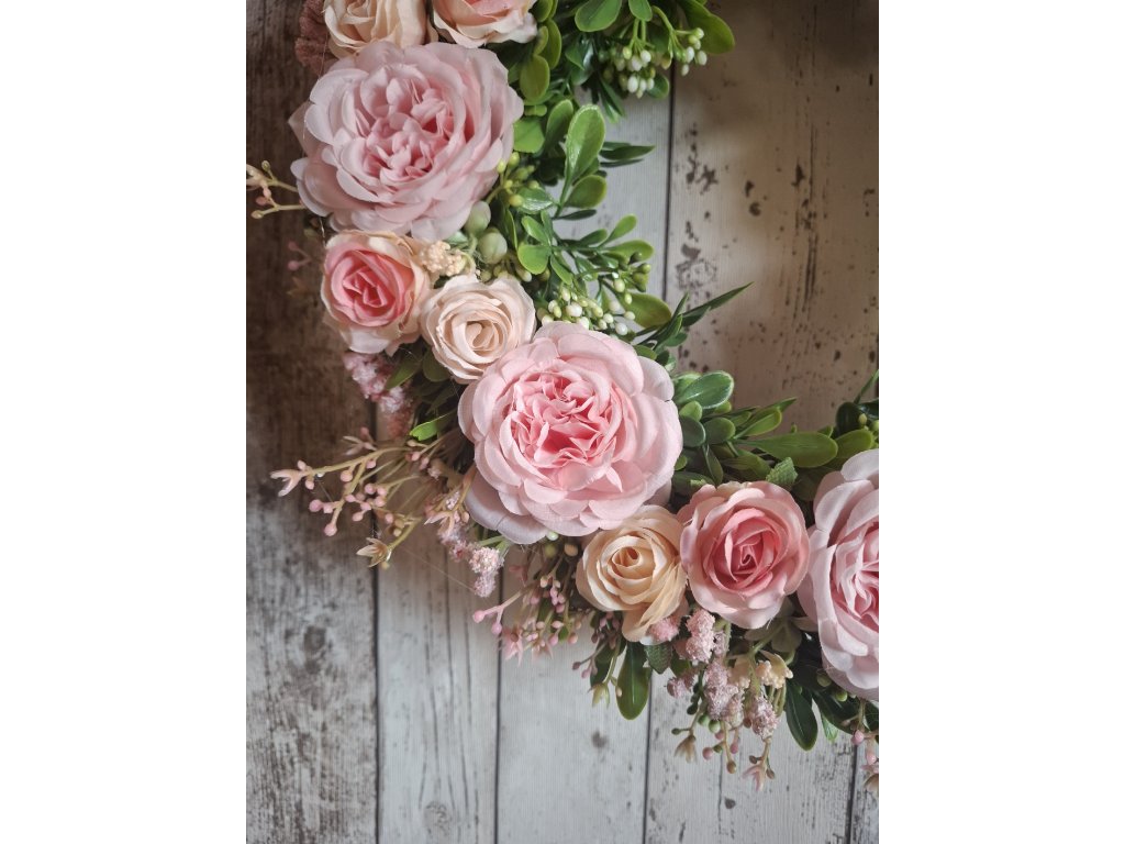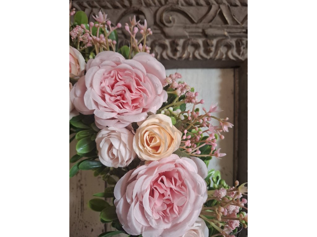 věnec v romantických barvách, umělé květiny