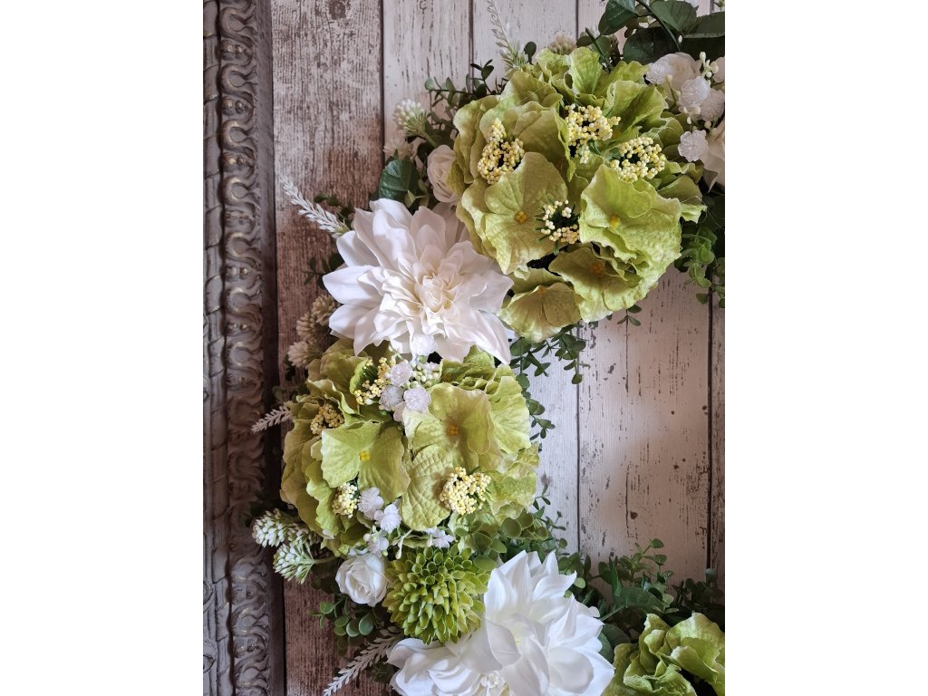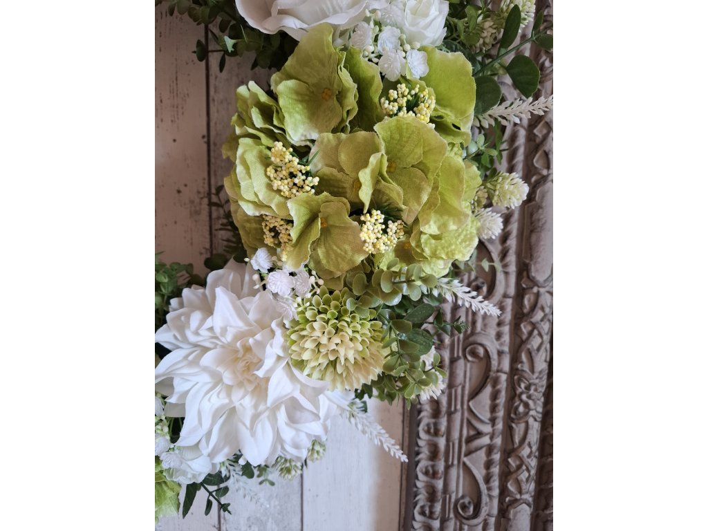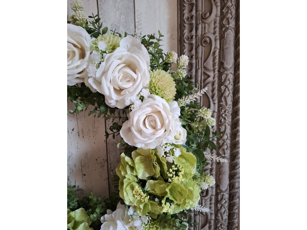 Celoroční věnec romantický shabby chic, provence bílo zelený