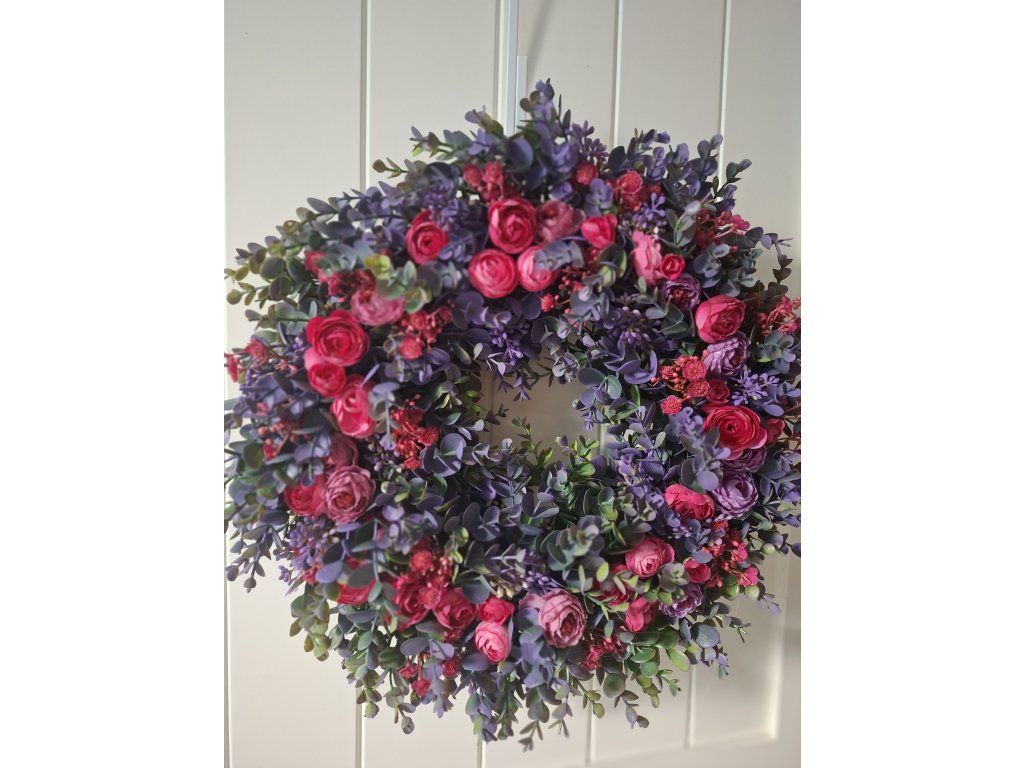 Celoroční věnec z umělých květin, průměr cca 47cm